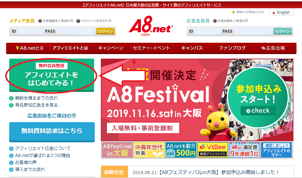 「A8.net」は、日本で1番メディア会員、広告主の数が多いASPサービスです。